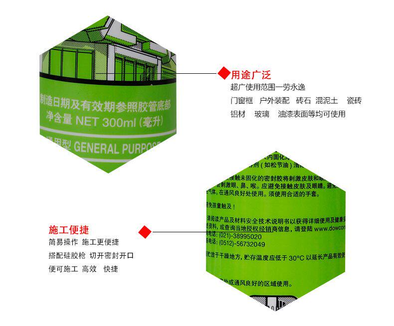 道康宁GP有机硅酮密封胶是一种用途广泛,低成本,耐用消费品久性强的酸性胶,用于玻璃密封用一般建筑材料。 |
